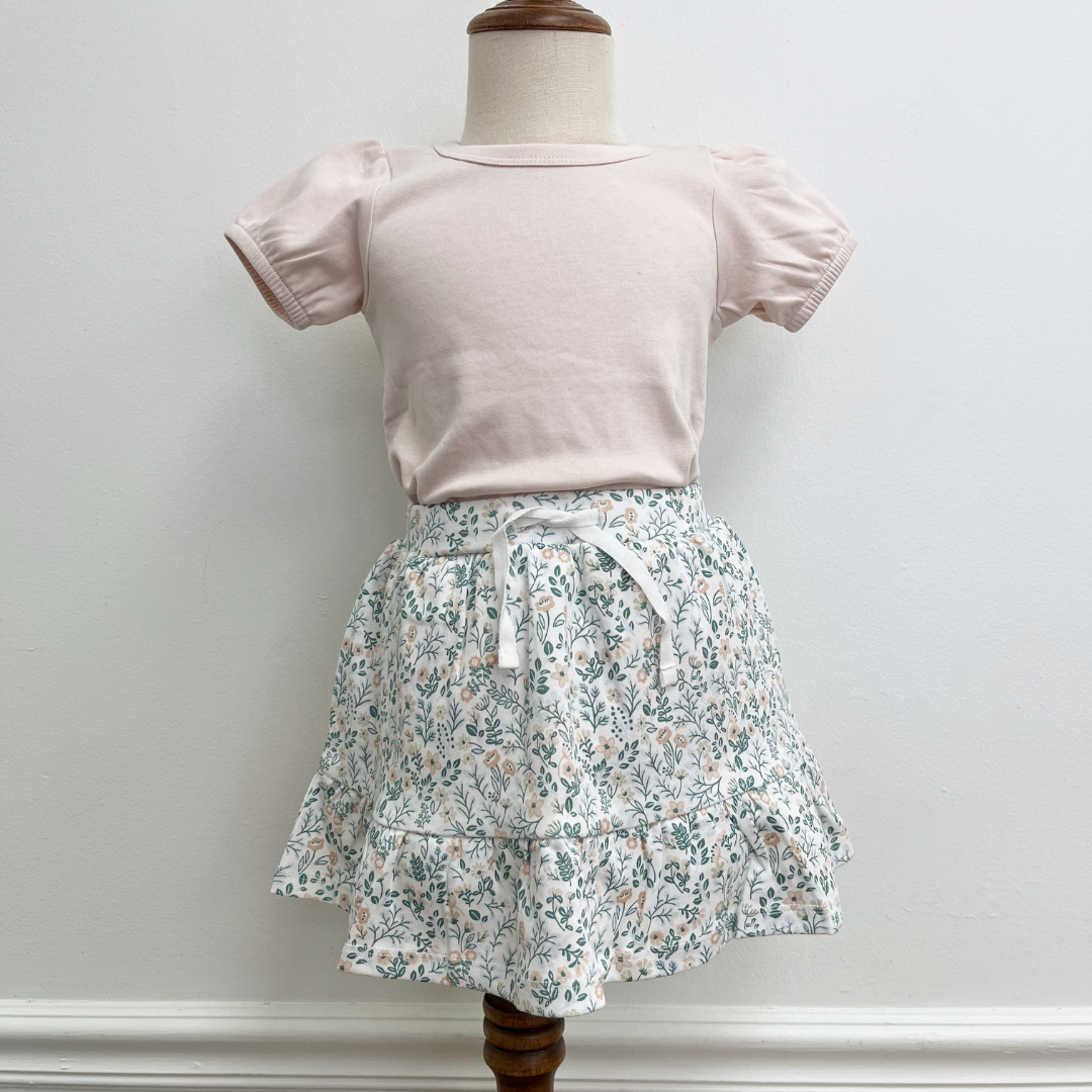 Sweet, swirly, and made for little ones on the move. This floral skirt in a soft Laguna and Shell colorway brings a touch of garden-fresh charm to any tiny wardrobe — perfect for everyday play or a special occasion.